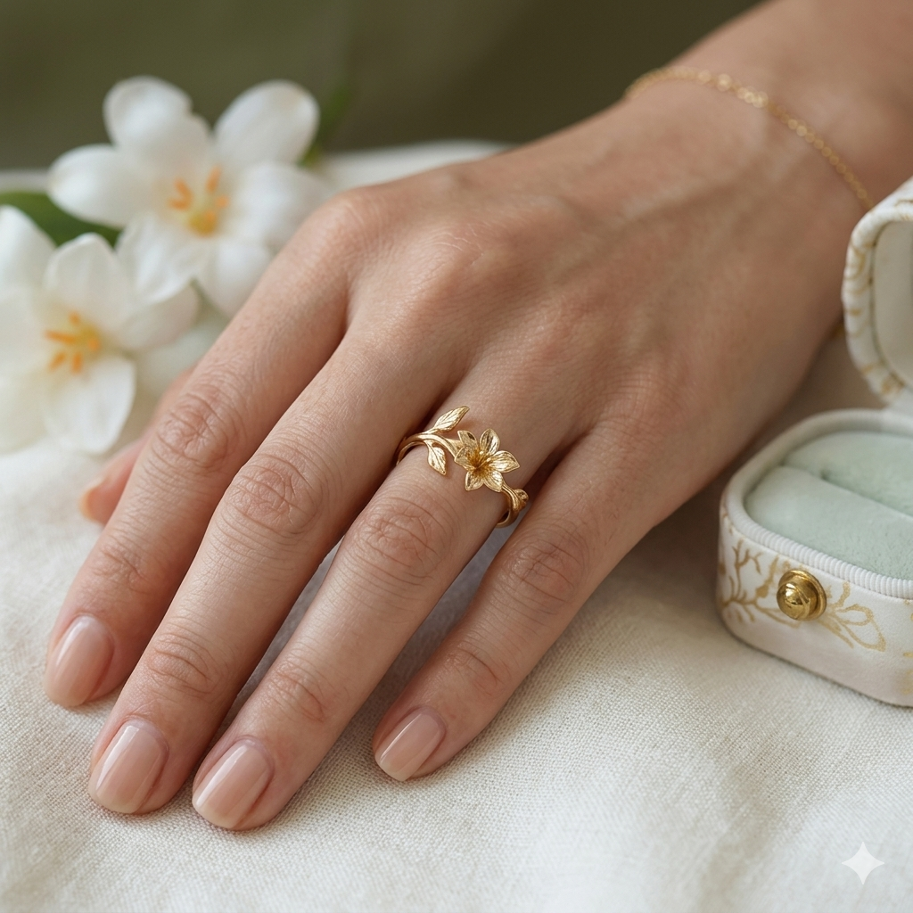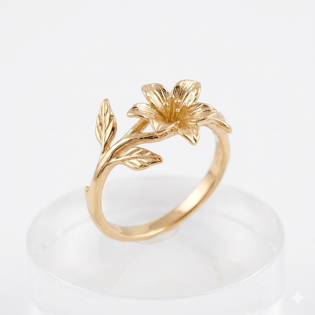 A delicate symbol of beauty and new beginnings, inspired by blooming flowers. This elegant golden ring brings a soft, romantic touch to your look — perfect for everyday wear or as a meaningful gift.
